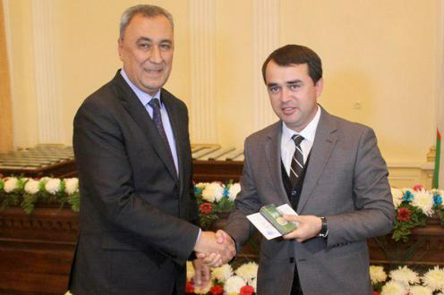 Самарқанд шаҳар ҳокими Фурқат Раҳимов (чапда) ва Бобур Элмуродов (ўнгда) . Самарқанд ҳокимлиги матбуот хизмати фотоси