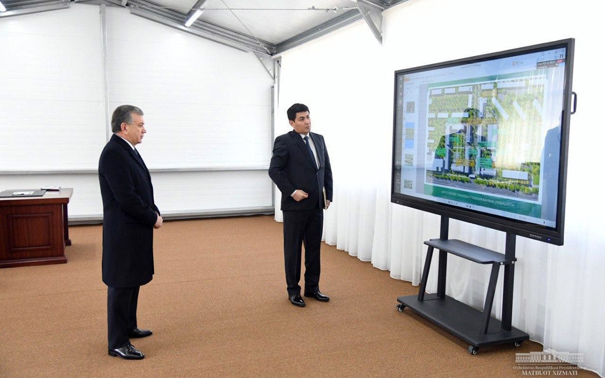 Шавкат Мирзиёевга Геология фанлари университетининг лойиҳаси кўрсатилмоқда. Ўзбекистон президентининг матбуот хизмати фотосурати
