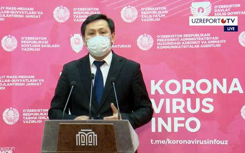 Алматов республикада вирус қандай тарқалаётганини айтиб ўтган. 11-мартда Париждан учиб келган, хусусий клиника ишлайдиган врач аёл уйига 35 та одамни чақиради. Кейинчалик уларнинг 13 тасида коронавирус борлиги аниқланган. Шунингдек, аёл ўз оила аъзоларига ҳам вирусни юқтирган. Битта манзилда аёл билан бирга ўнта одам истиқомат қилади. Ишхонада эса врач аёл 42 та касал ва 80 та одам билан мулоқотда бўлган.