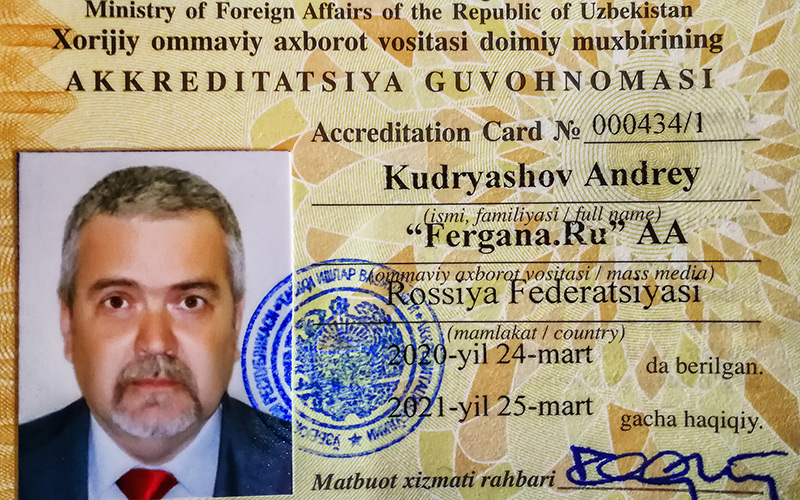«Фарғона» ахборот агентлигининг Ўзбекистондаги махсус мухбири Андрей Кудряшовнинг аккредитацияси 2021 йил 25 мартгача узайтирилди. 24 март куни республика Ташки ишлар вазирлиги томонидан мухбирга шу тўғрида гувоҳнома берилди.