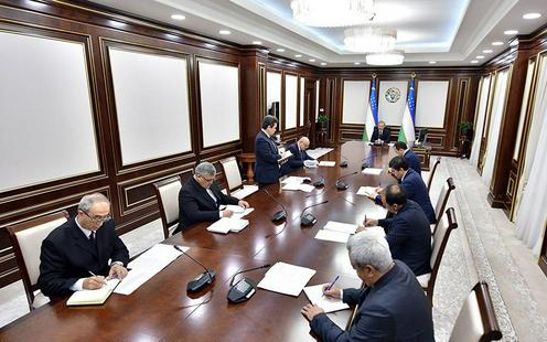 Шавкат Мирзиёв раҳбарлиги остида 2020 йил 30 апрель куни бўлб ўтган йиғилиш. Ўзбекистон президенти матбуот хизмати фотосурати