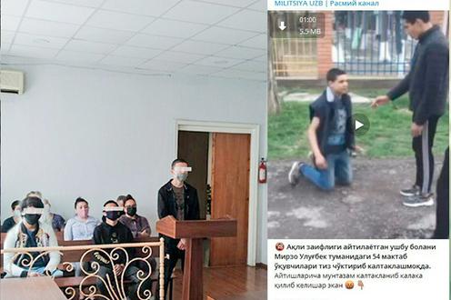 Ўсмирлар тиз чўккан тенгдошини таҳқирлаганликлари, шу жумладан уни қўли ва оёқлари билан ураётгани тасвирга туширилган видео апрель ойида ижтимоий тармоқларда тарқалган ва ана шундан кейин жабрланганнинг онаси ички ишлар бўлимига ариза билан мурожаат қилиб, тегишли чора кўрилишини сўраган. Текширувда аниқланишича, видео жорий йилнинг 25 март куни соат 15.00 да Мирзо Улуғбек туманидаги № 219 мактаб ёнида тасвирга олинган.