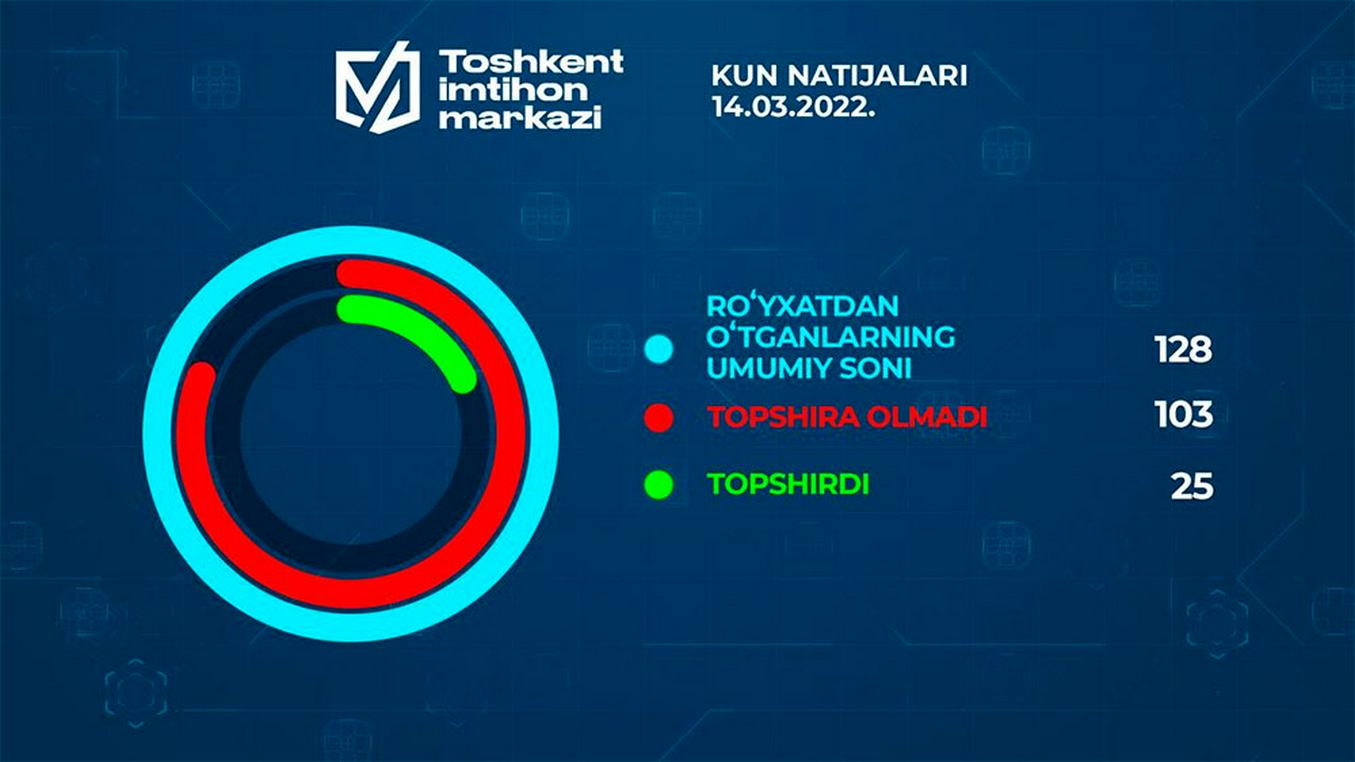 4 февралдан 14 мартга қадар Тошкент автомактабларининг 2406 нафар битирувчисидан атиги 347 нафари (14,4 фоизи) ҳайдовчилик гувоҳномаси имтиҳонларини топшира олди. Бу ҳақда пойтахтдаги бўлажак ҳайдовчилар учун биринчи ва ҳозирча ягона Тошкент имтиҳон маркази (ТИМ) эгаси Комил Алламжонов маълум қилди.