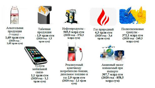 2021 йили эгри солиқлар бўйича тушумлар 9,9 триллион сўмга (21,2 фоиз) ўсиб, 56,3 триллион (5,1 миллиард доллар)ни ташкил қилган.