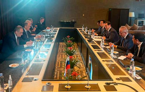 «Ҳурматли Сардор Ўктамович, мен ўз муносабатимни изҳор қилмоқчиман», — деди Лавров Умурзоқов билан саломлашгандан сўнг. — Сиз билан шахсан танишганимдан хурсандман. Ўзбекистон фаровонлиги, иттифоқчилик, стратегик муносабатларимизни ривожлантириш йўлида нақадар фаол ишлаётганингизни биламиз».