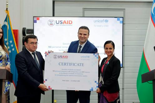 Америка Қўшма Штатлари Ўзбекистон Соғлиқни сақлаш вазирлигига мамлакатнинг миллий иммунизация тизимини мустаҳкамлаш мақсадида USAIDорқали совуқ занжирли ускуналар ва компьютерларни совға қилди. Бу ҳақда ЮНИCEФ (UNISEF) матбуот хизмати хабар берди.