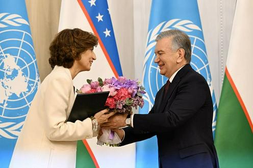 Ўзбекистон президенти Шавкат Мирзиёев Бирлашган Миллатлар Ташкилотининг Таълим, фан ва маданият масалалари бўйича ташкилоти (ЮНEСКО) директори Одри Азулега «Дўстлик» орденини топширди. Давлатнинг юксак мукофотини топшириш маросими Самарқандда бўлиб ўтди.