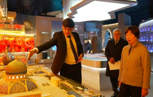 Дастлаб делегация Марказнинг «Шон-шараф зали»ни кўздан кечирди. Бу ерда Марказий Осиё заминидан етишиб чиққан буюк алломалар ва давлат арбоблари сиймоси меъморий ва бадиий ечимлар орқали мужассам этилган. Исломгача бўлган даврга бағишланган бўлимда қадимги Хоразм, Сўғдиёна ва Бақтрия маданияти, «Авесто» мероси ва археологик топилмалар тақдим этилган.
